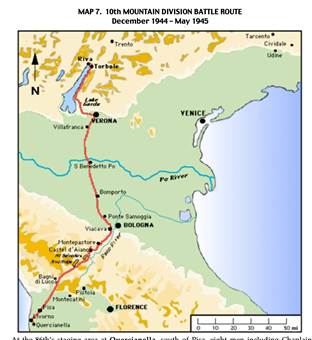 Una unità della 10 Mountain Divisione, l’86° Regiment, è transitata anche da Lucca nel primi giorni di gennaio stazionando nei pressi di Posta San Donato, per riordinarsi prima di iniziare un avvicinamento nella zona del pistoiese, sfondare l’Appennino verso Bologna per terminare l’avanzata sul Lago di Garda, zona Nago-Torbole.