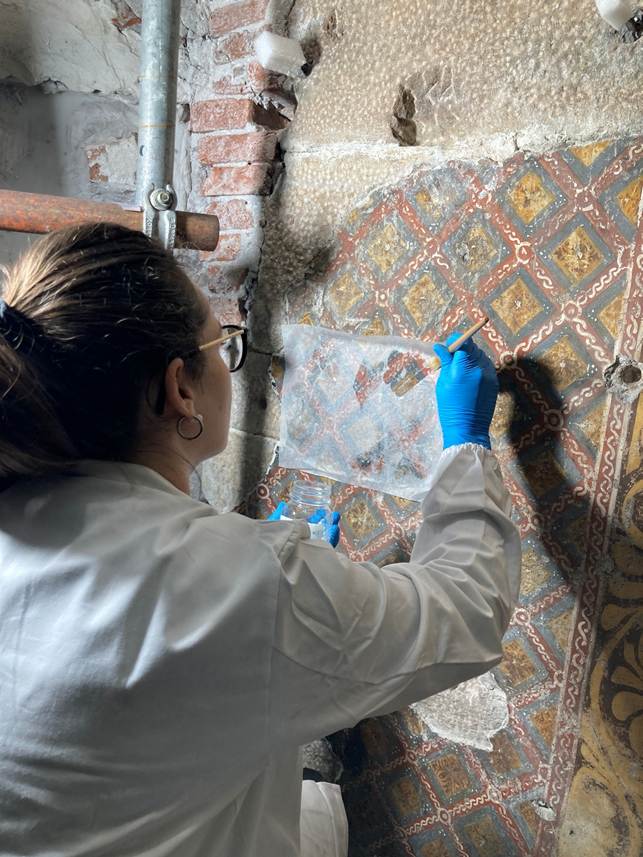 La rimozione di lesene, paraste e pannellature rivestite in velluto, che occultavano gran parte della superficie muraria, ha rivelato elementi inattesi.