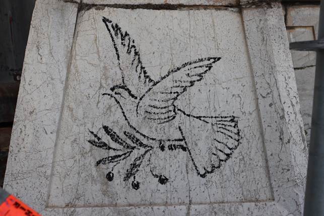 «Il 12 dicembre 2022 – si legge nella lettera – una delle lastre di piombo della cupola si staccò senza precipitare a terra, grazie ad un provvidenziale fragile appiglio che richiese subito un rinforzo provvisorio operato dei Vigili del Fuoco che vennero in nostro soccorso. Tra i molti sondaggi preparatori, il 28 settembre 2023 fu fatta una ispezione di tutta la superficie del tetto della cattedrale con una ripresa video-fotografica anche della cupola lesionata. In una successiva ispezione, compiuta il 10 novembre 2025, s’è visto, sulla sommità della cupola del “santuario” il disegno della colomba, eseguito su una lastra di marmo. Abbiamo fatto ricerche e chiesto informazioni a tante persone addette ai lavori di restauro, attualmente non conosciamo né il giorno e nemmeno la mano che ha tratteggiato questa figura. Potremmo fare tante ipotesi, ma ci piace pensare che uno o più ardimentosi scalatori, in modo furtivo e ignorando persino i divieti di salire fin lassù, abbia voluto lasciare, non tanto uno sfregio, una sigla di contestazione, o parole blasfeme, ma un messaggio senza parole lasciato più in alto possibile quasi per farlo giungere più in fretta a destinazione. Quella colomba è stata disegnata in volo verso oriente, e ci piace pensare che per questa sua direzione ci offra il messaggio più importante: come il sole sorge e vince l’oscurità, così, da oriente, venne la Luce vera che splende senza fine, Cristo Signore, il Risorto, il Vivente che è la nostra Pace».