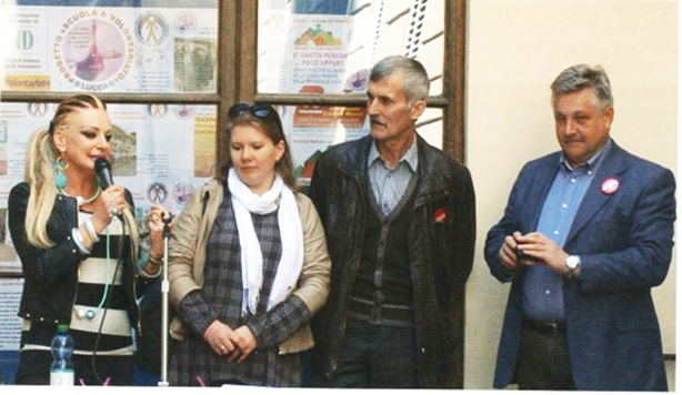 Ricordiamo che nell’aprile di dieci anni fa, in occasione del trentesimo anniversario della tragedia di Chernobyl a Lucca venne organizzata a Palazzo Ducale anche una mostra con i disegni e gli elaborati di 9 Scuole Primarie (Pieve San Lorenzo, Piazza al Serchio, Monte San Quirico, Camigliano, Segromigno in Monte, San Colombano, Gragnano, dell’Istituto Esedra e della Primaria «Del Fiorentino» di Capannori) e di una Scuola secondaria di primo grado (quella di Camigliano), grazie al lavoro svolto dalle insegnanti, dai giovani del Servizio civile del Centro Nazionale per il Volontariato e naturalmente dagli studenti. Questa mostra venne curata proprio dall’Associazione umanitaria «Yra» dell’attivissimo presidente Egidio Lazzerini, all’interno del Festival del volontariato del 2016.  Alla premiazione parteciparono anche una ex bambina, nata a Chernobyl tre anni dopo l’esplosione, e due «liquidatori» ovvero lavoratori che operarono al recupero della zona del disastro per alcuni anni al fine di decontaminare l’edificio e il sito del reattore, le strade e a costruire il sarcofago per contenere il reattore. Ospiti che vediamo in questa foto.
