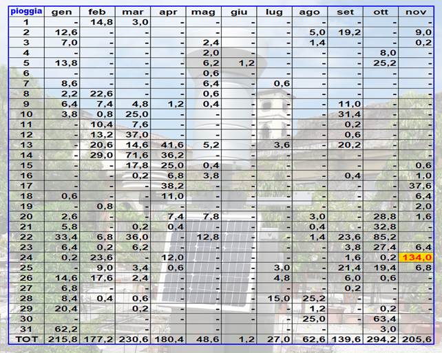 Un novembre da primato per la pioggia in 24 ore e il livello delle falde idriche. Oggi si apre dicembre per puntare al primato annuale dell’umidità.